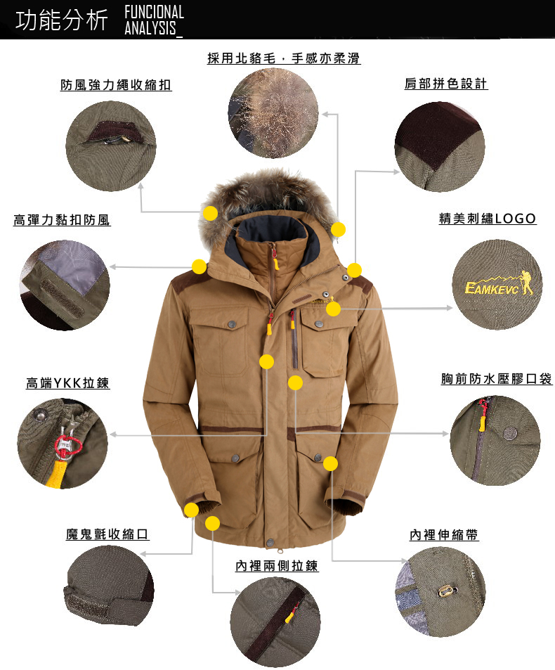 EAMKEVC 8104 兩件式防水保暖外套 頂級羽絨700P 軍綠
