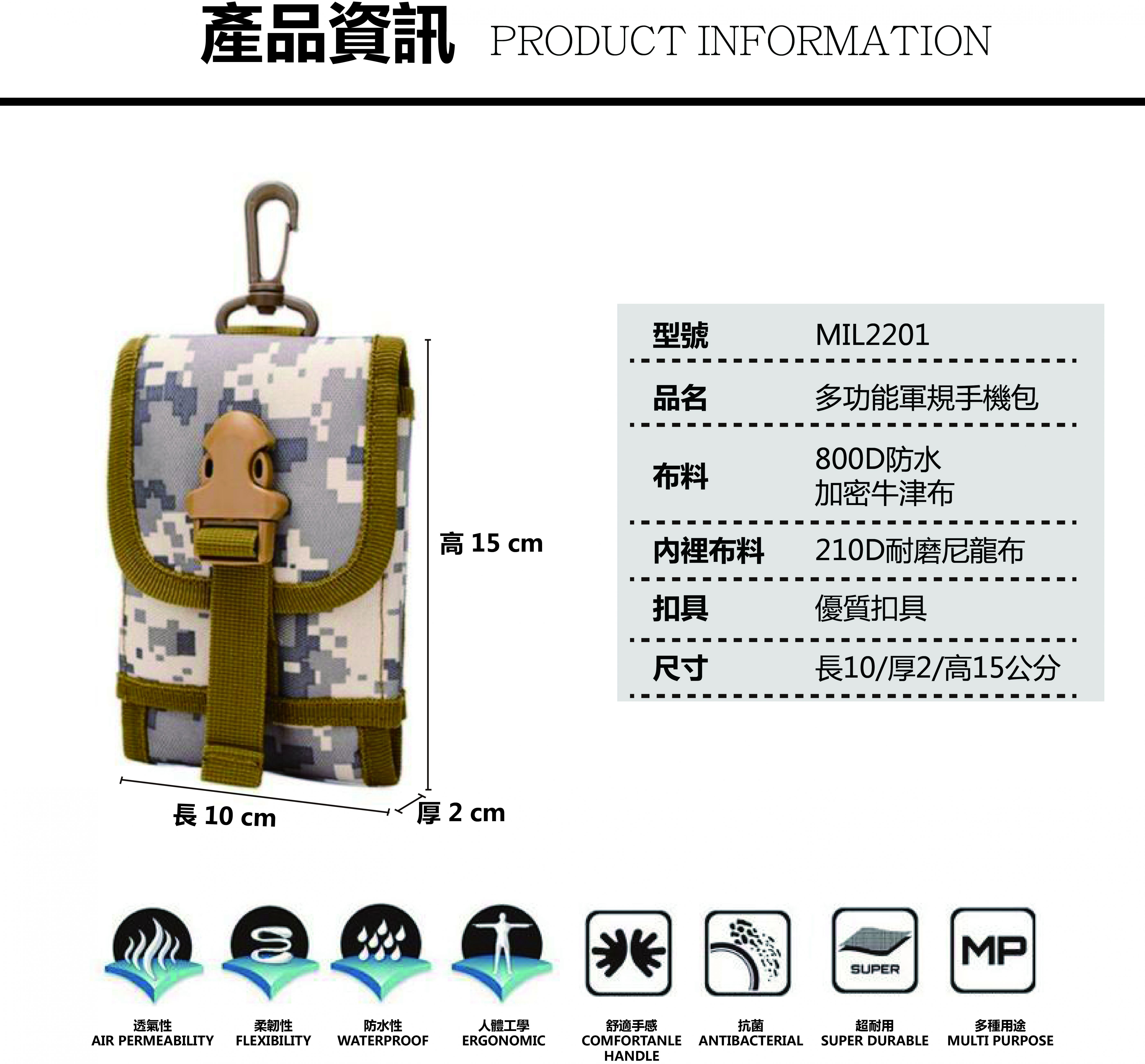 可掛於肩帶上、腰帶上、MOLLE系統上的手機包/配件包