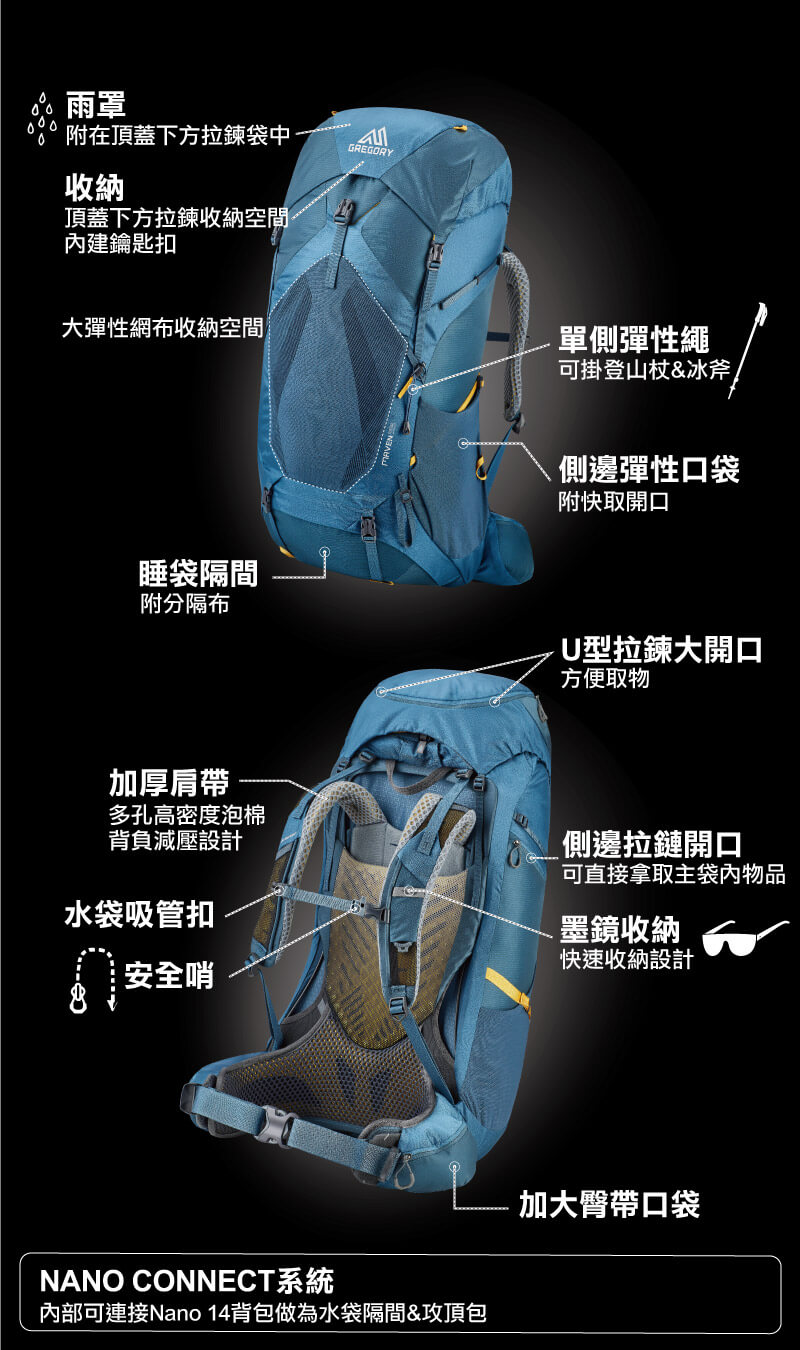 伊凱文戶外 GREGORY 女 45L MAVEN 登山背包 氦灰綠(Helium Grey)