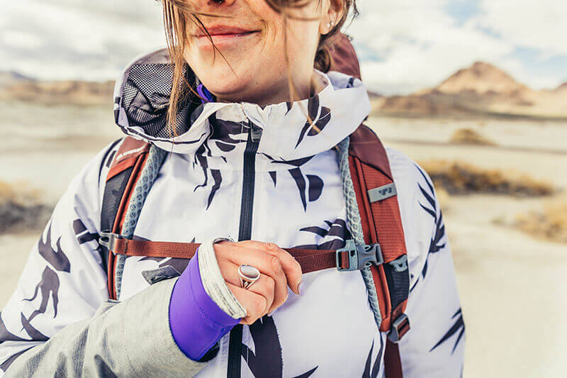 Quickstow system on shoulder harness for a secure, scratch-free way to store your sunglasses.