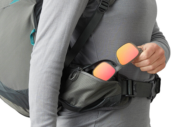 - 肩帶上裝有太陽眼鏡 QuickStow 系統,可快速、安全且無刮除地取用墨鏡