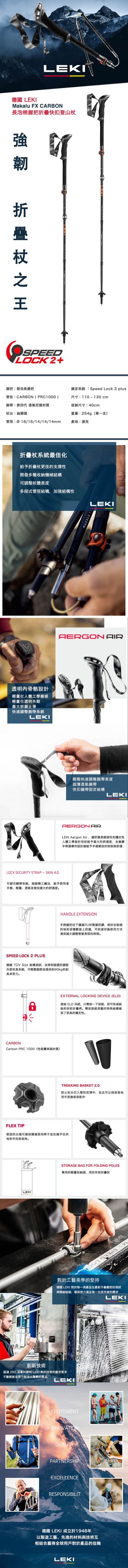 德國【LEKI】Makalu FX CARBON 軟木長握把 ELD 快速扣碳纖維折疊登山杖 (一盒兩支含專用收納袋 )65220621