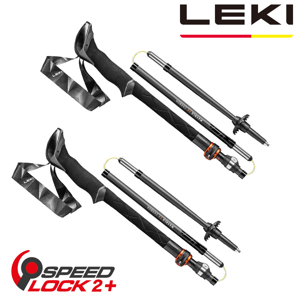 LEKI Makalu FX CARBON 軟木長握把 ELD 快速扣碳纖維折疊登山杖 (一盒兩支含專用收納袋)