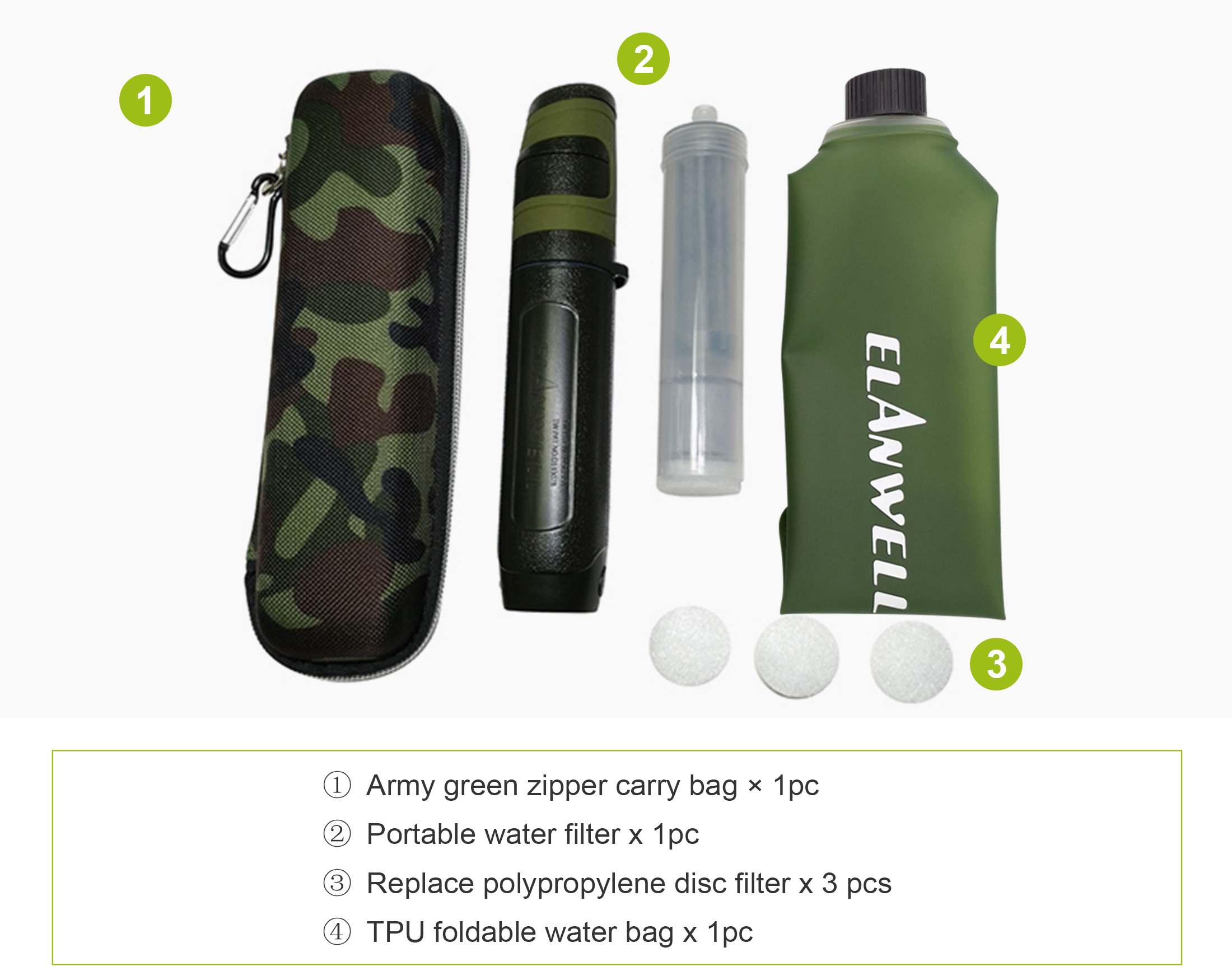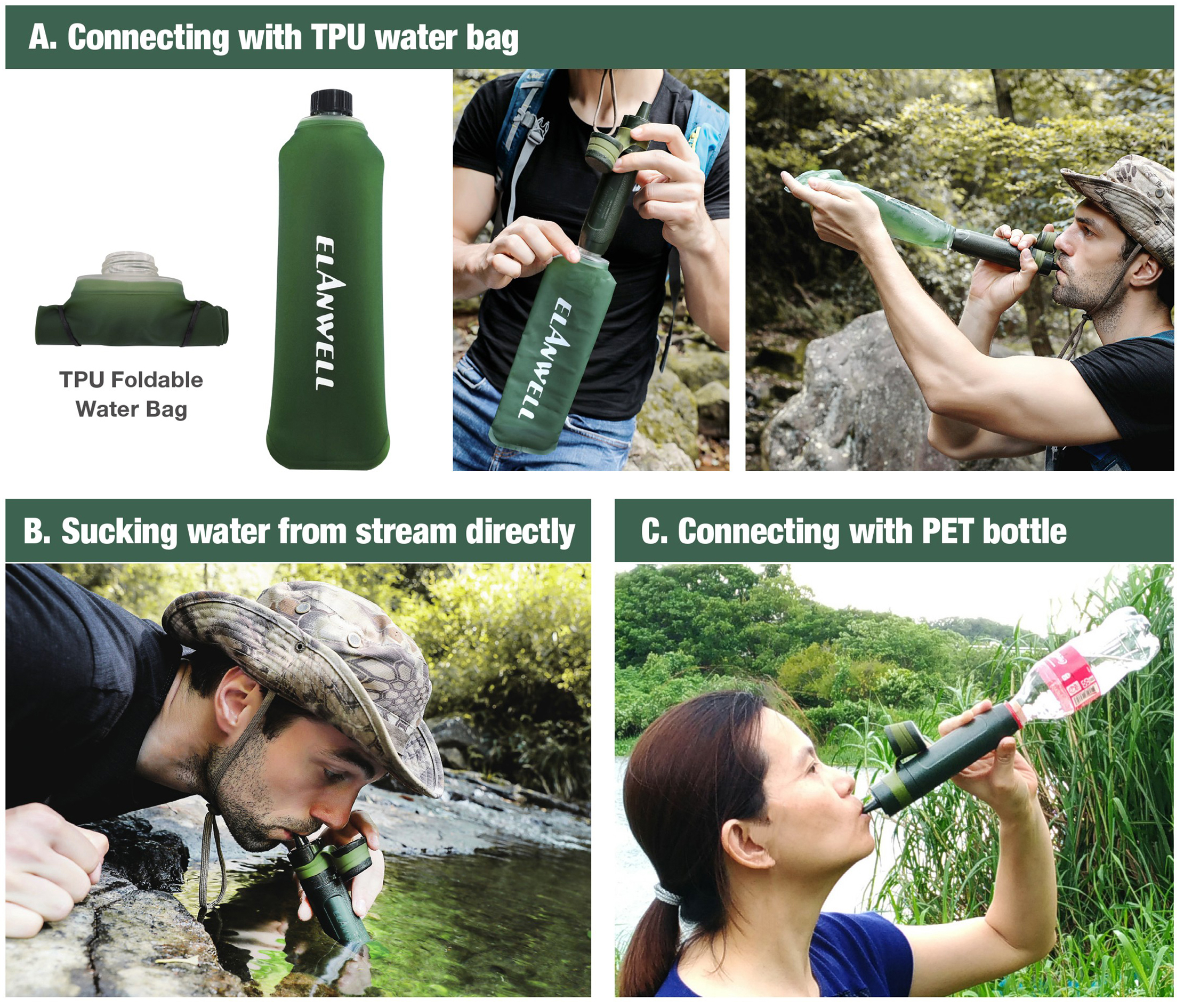 - Turns lake water or stream water into directly drinkable water after filtration.