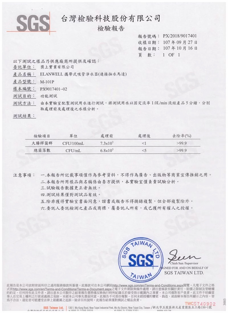 SGS測試報告(去除細菌)