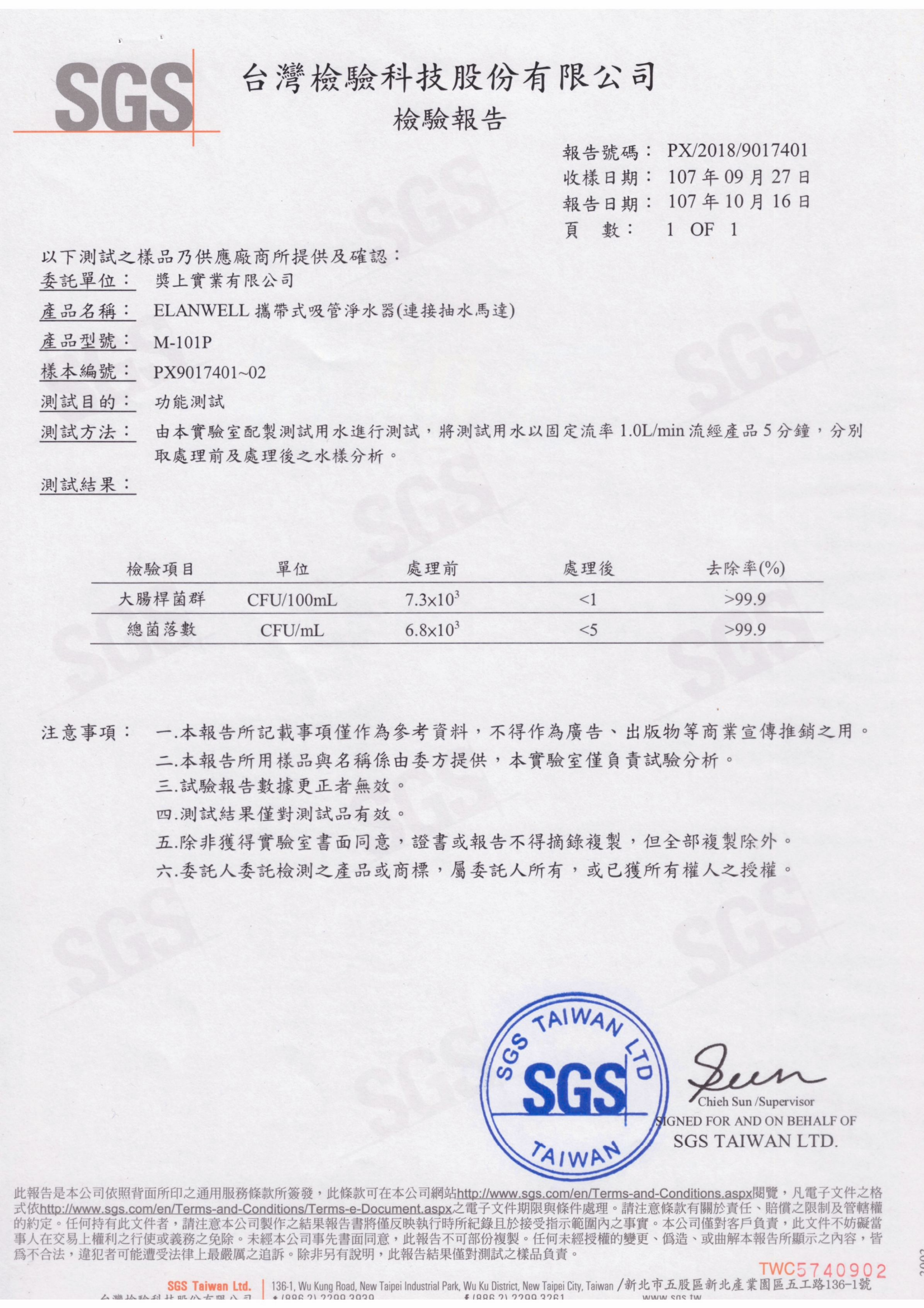 - 去除水中病毒、細菌、胞囊、寄生蟲、泥沙、異味、水中餘氯及多種有機污染物