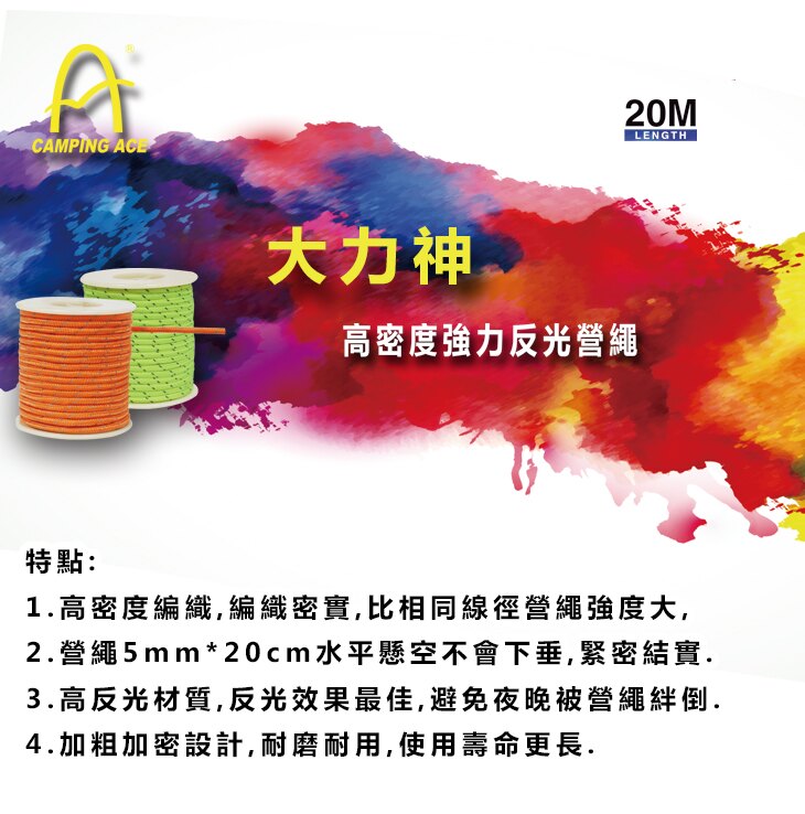 高密度強力反光繩5MM*20米 營繩 ARC-114-20 野樂 Camping Ace
