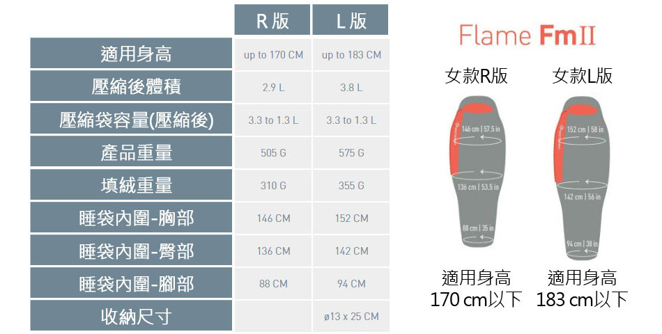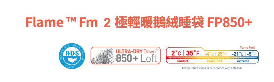 極輕及具技術性的FlameTM 系列睡袋,讓你在打包時,同時兼顧輕量化與保暖。