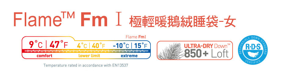 專為女性設計提高更多保暖度! 當你需要高性能睡袋但不想背帶太多重量,我們的 FlameTM 系列睡袋是妳最好的選擇
