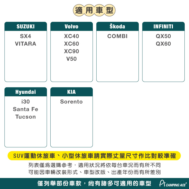 (列表僅為選購參考,適用狀況將依每台車況而有所不同,可能因車輛改裝形式、車型改版、出產年份而有所差別)