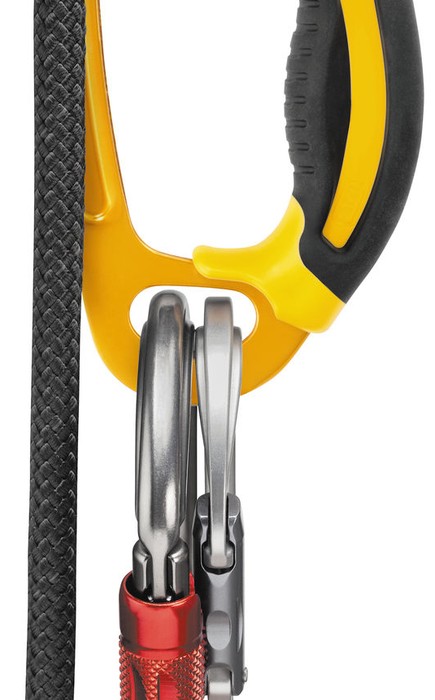 ‧塑模雙層密度把手有給食指的位置及一個寬闊的支撐底部使手不至於滑下,這種形狀確保有舒適和強力抓握,增加在繩索攀登時的效率。