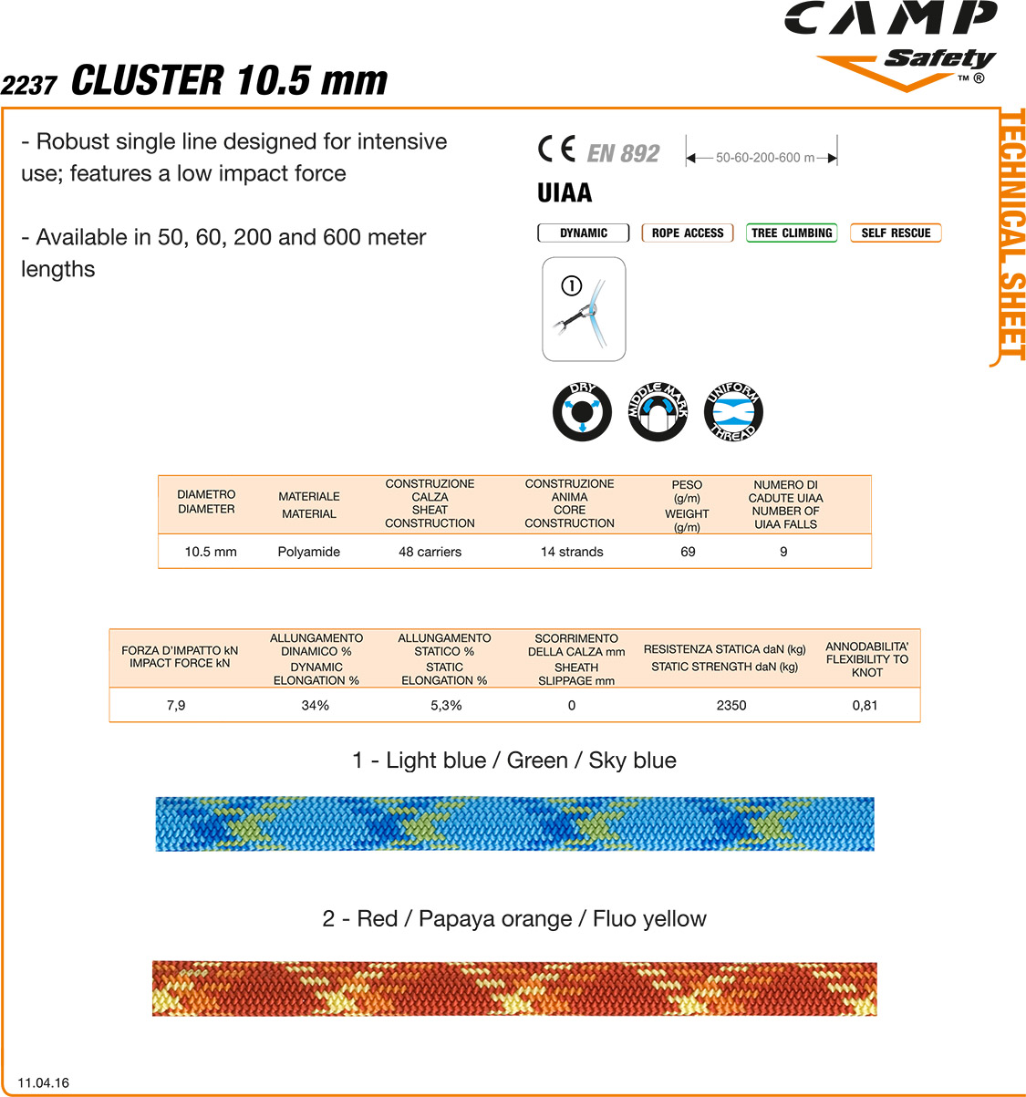 品 名: CAMP 2237 CLUSTER 10.5 mm 動力繩