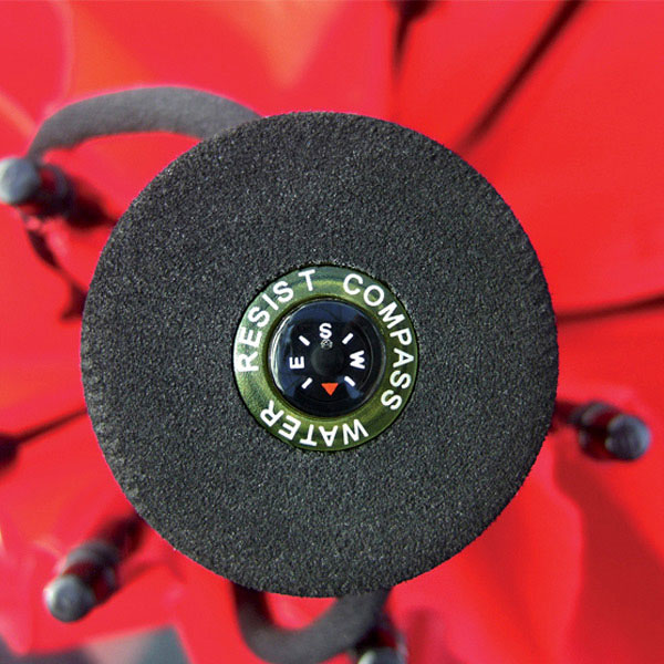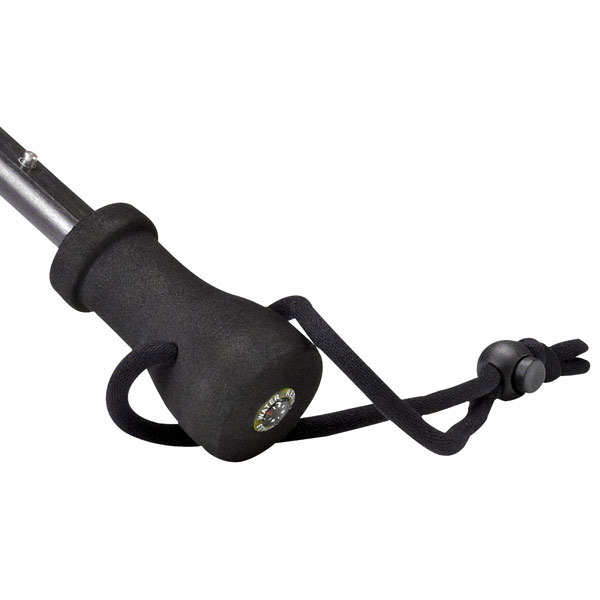高密度的EVA泡棉把手,抓握力強,和可調整的腕帶環,握把頂部貼心設計:一個小指北針。