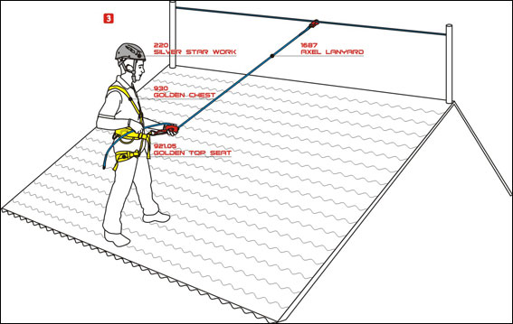 工人在屋頂或傾斜面工作時,必需架設錨索(Lifeline, CE規範EN795),不論是固定式或臨時性錨索,都必需以專業方式架設。如此可讓工人在整個傾斜面上安全移動而不墜落。 使用可調整長度的挽索、安全繩及墜落制停裝備來定位工作。