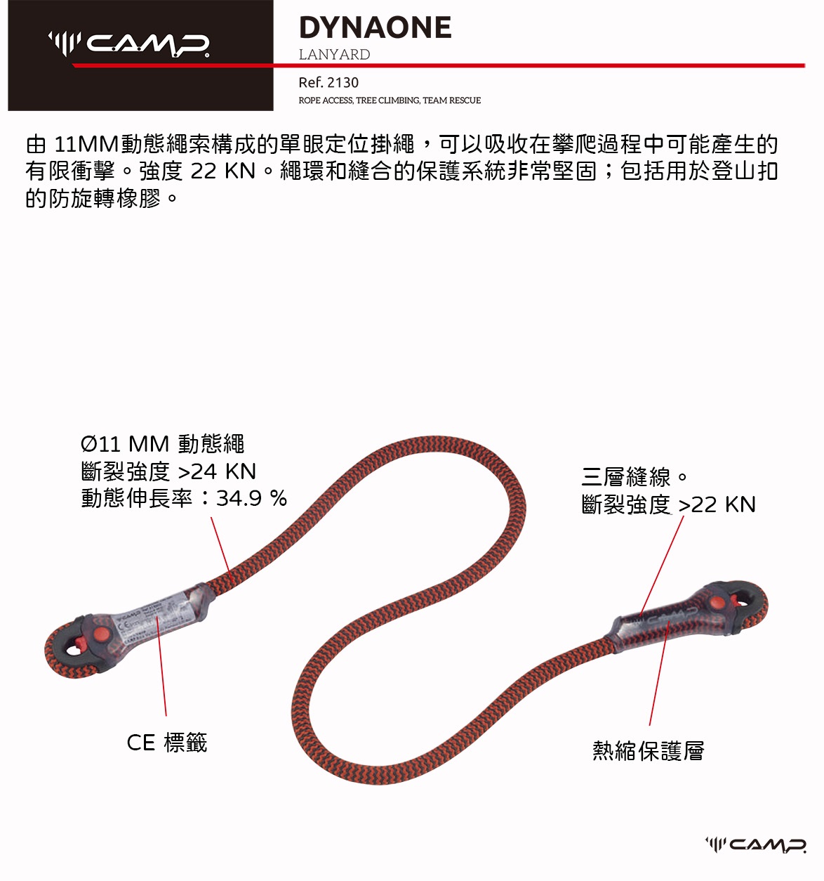 使用Ø11 mm動力繩,可用於工作定位及繩索技術挽索使用