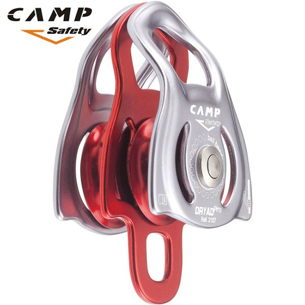 Compact double pulley for block-and-tackle systems. Large connection hole accomodates two carabiners. For ropes up to 13 mm. Prusik minding, the self-locking knot can be installed on both sides and both wheels. Sealed ball bearings for high efficiency and intensive use at high speed. Efficiency: 80%. Aluminum alloy body and wheels, stainless steel axle.