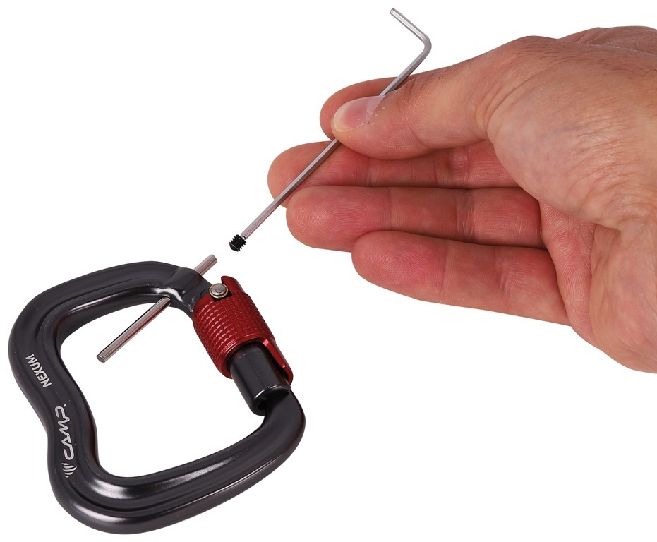 Equipped with the compact auto-locking Nexum carabiner for the connection between the sit and chest parts of the harness. The Nexum is notable for its low profile with a shortened height that does not hit the sternum like full-size carabiners, as well as its clean closure and smooth 3Lock opening and closing action. The anti-rotation pin can be removed in order to capture the Turbochest ascender.