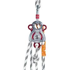 A high strength multifunctional double pulley for block-and-tackle systems and complex operations. Features large wheels, a main attachment point that accommodates three carabiners, and a large becket with a large bottom attachment point and two secondary attachment points on the sides for linking, positioning and attaching progress capture systems. For use with ropes up to 16 mm. Prusik minding, the self-locking knot can be installed on both sides of both wheels. Sealed ball bearings for high efficiency and intensive use at high speed. Efficiency: 97%. Aluminum alloy body and wheels, stainless steel axle.