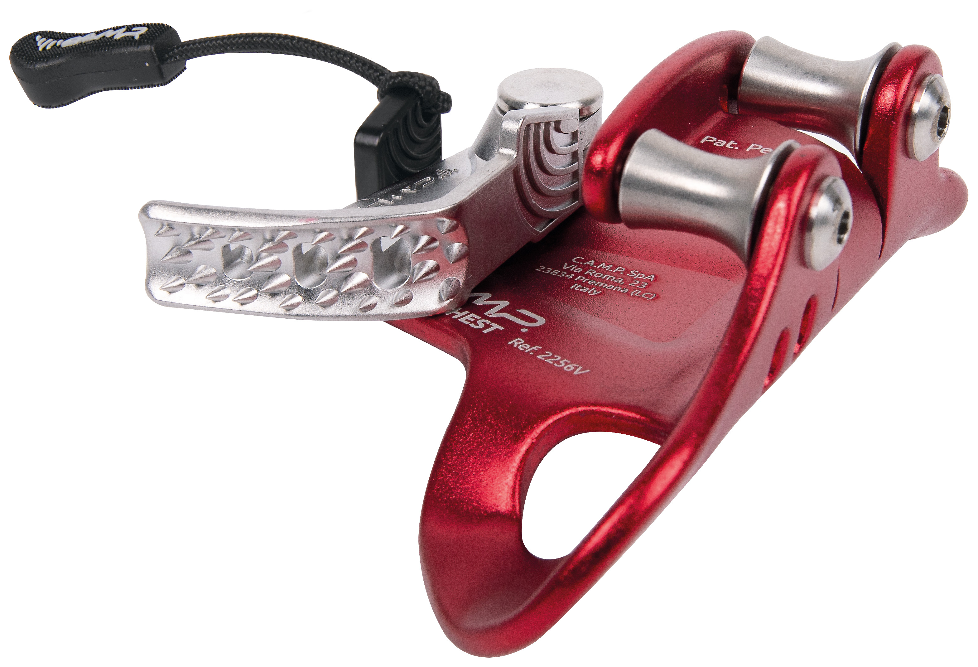 A revolutionary chest ascender that features two rollers for a smooth interface with the rope.