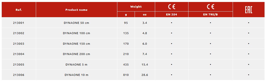單繩定位掛繩由 11 mm動態繩製成,可吸收定位活動期間可能產生的有限衝擊。也適合用作便攜式錨。強度22kN。