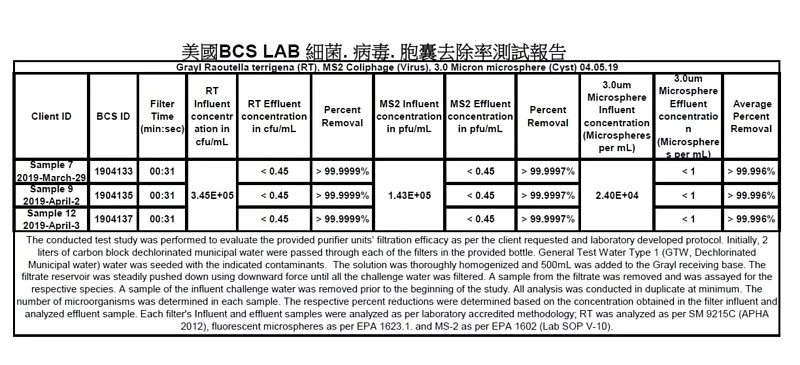 BCS測試報告(去除病毒,細菌,胞囊)