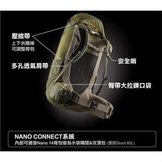 底部拉鍊睡袋隔間,內有可拆式擋片(僅stout70/60備有)