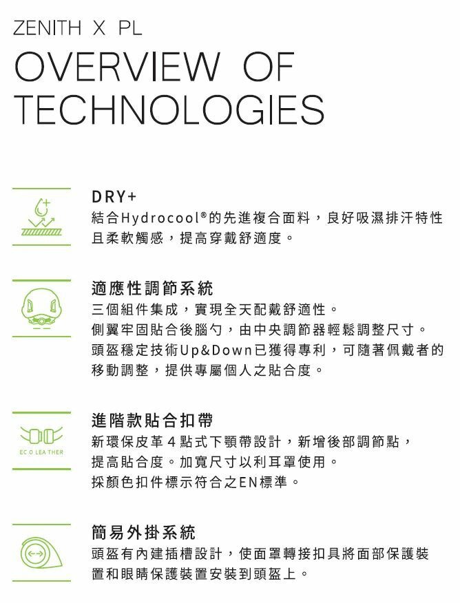 新環保皮革4點式下顎帶設計,新增後部調節點,提高貼合度。