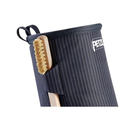 The BANDI chalk bag’s round shape is designed to fit your entire hand. It has a practical drawstring and cordlock closure system. A double textile brush slot can hold a variety of brush types. Made with 100 % recycled polyester and nylon, this product has an eco-friendly design.