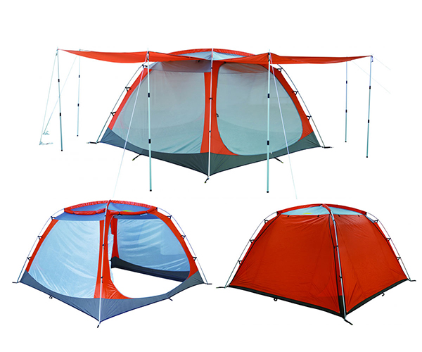 • 四面遮陽片,可另購犀牛牌180公分鋁合金伸縮直柱及拉繩,增加遮陽及炊事功能
