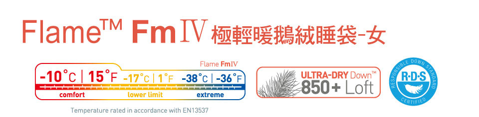 專為女性設計提高更多保暖度! 當你需要高性能睡袋但不想背帶太多重量,我們的 FlameTM 系列睡袋是妳最好的選擇