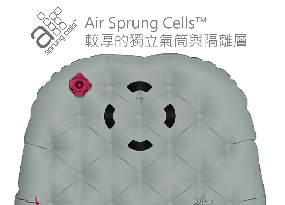 輕量、極厚、尺寸適中的輕量舒適睡墊,適合偏好側睡的人使用,較為厚實的睡墊高度,不因睡姿造成身體偏向單側,進而直接接觸地面的情況產生。使用TPU 塗層製出較大的多個獨立環型氣室並與上下層的Air Sprung CellTM 獨立氣筒做連結。環狀氣室的設計將上下層距離拉大,能在用較少布料的情況下,製造出較大的隔離空間。