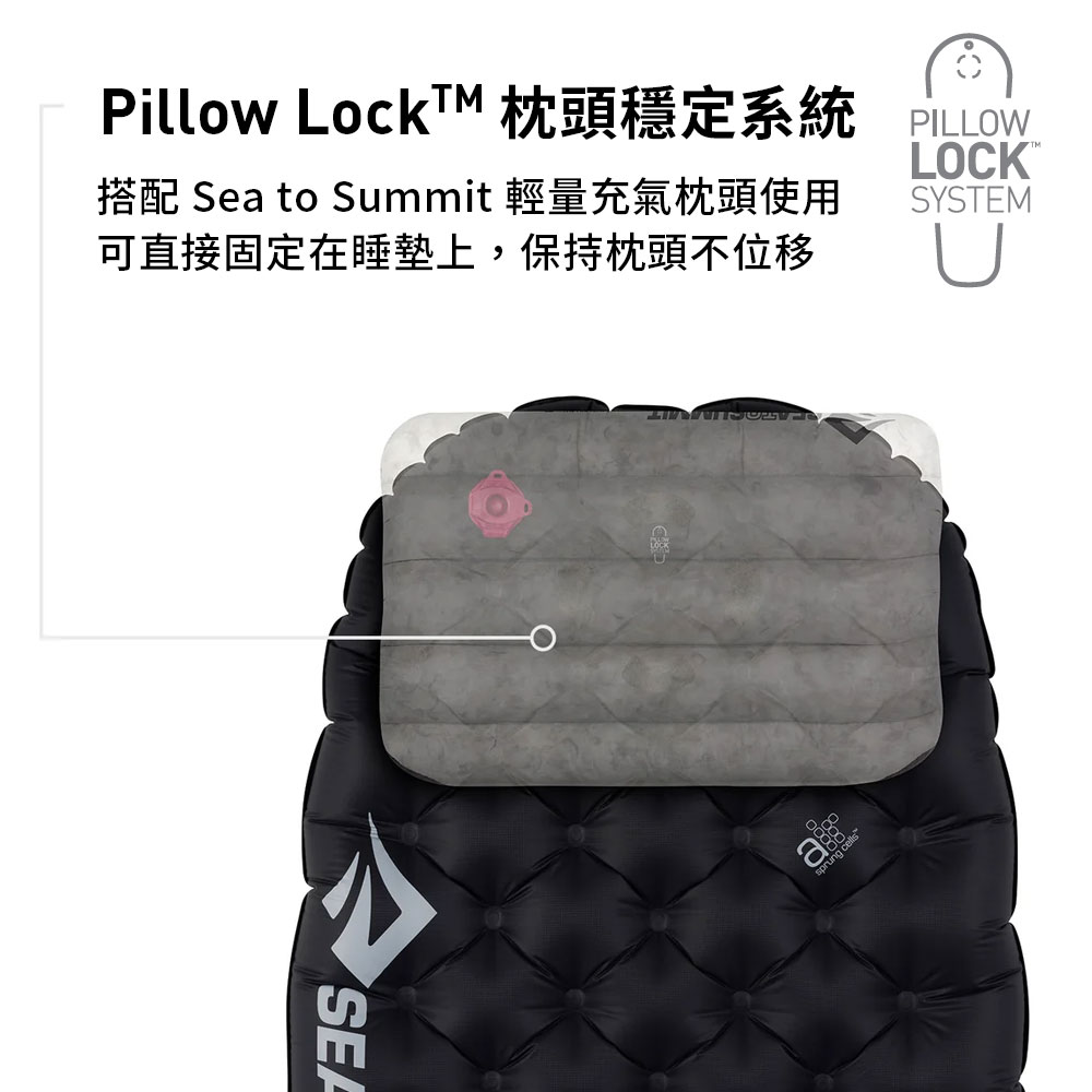 Pillow Lock System 枕頭穩定系統,搭配 Sea to Summit 輕量充氣枕頭使用,可直接固定在睡墊上,保持枕頭不滑動。