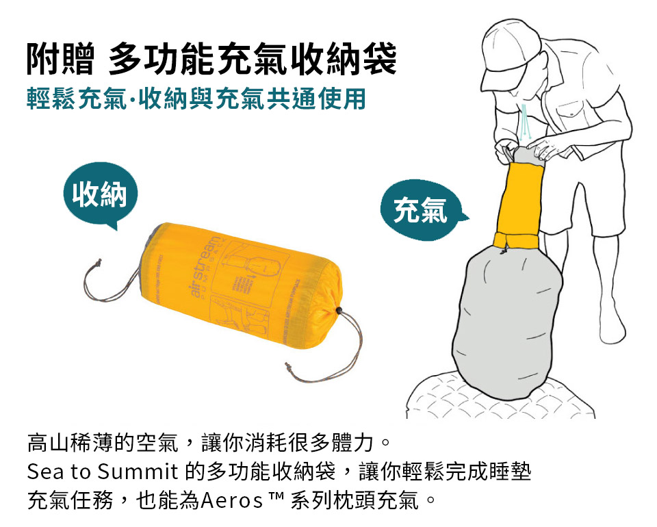 來自澳洲最佳戶外裝備 Sea to Summit,追求更輕量、更耐用、更符合戶外活動的需求,帶給您戶外活動最棒的睡眠品質。Sea to Summit 致力於研發出一款優於市面上現有睡墊更棒的款式,這樣的企圖心驅使 Sea to Summit 成功研發出世界上即為輕巧、方便攜帶的全系列睡墊新品!探究為什麼 Sea to Summit 能設計出如此切合戶外活動中所需要的產品,只因為在乎每次在戶外過夜的睡眠品質。Sea to Summit 非常榮幸能帶給戶外活動喜愛者如此卓越的商品,助您一夜好眠!