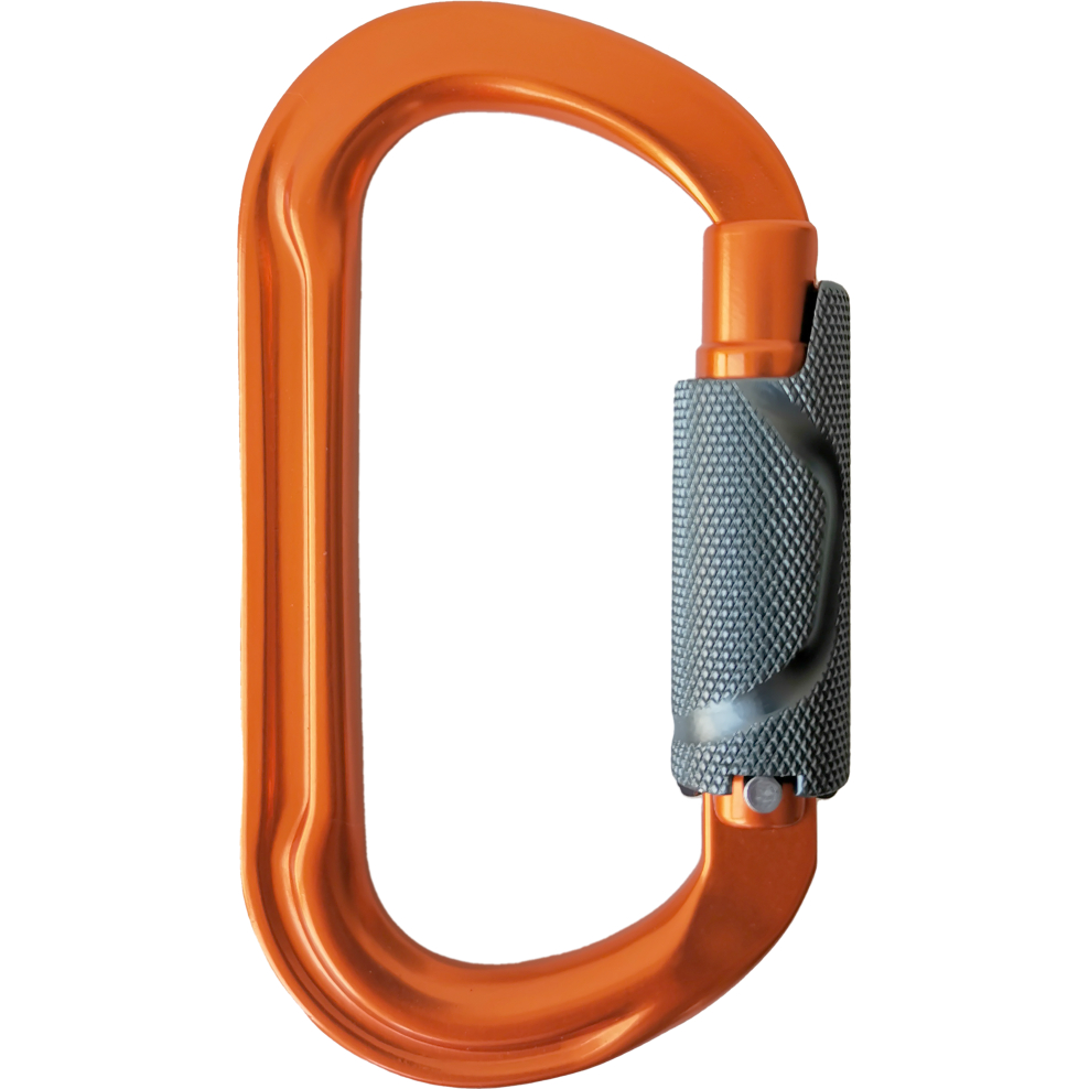 橢圓形登山扣,附雙三重門。非常適合用於索具系統,配有保護/繩降裝置、繩索和滑輪。