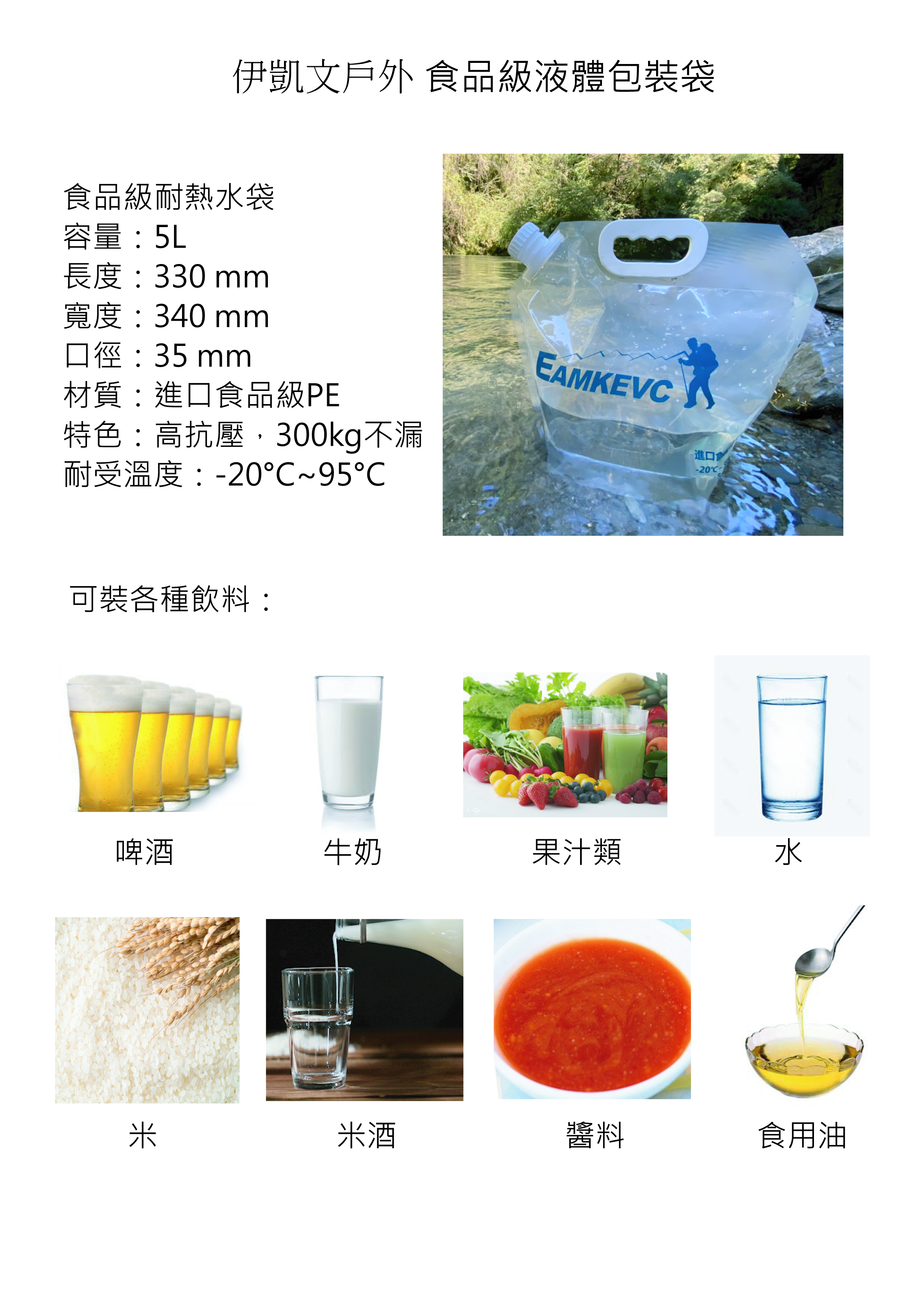 功能:儲存節省空間、方便攜帶、可裝飲用水、精釀啤酒、果汁、豆漿等。