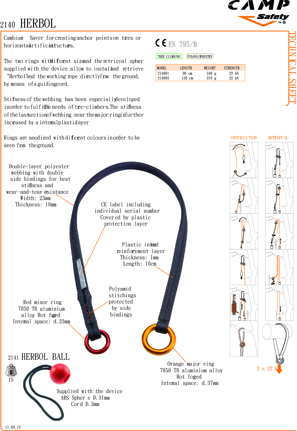CAMP 2140 HERBOL 攀樹用延伸支點 120 cm