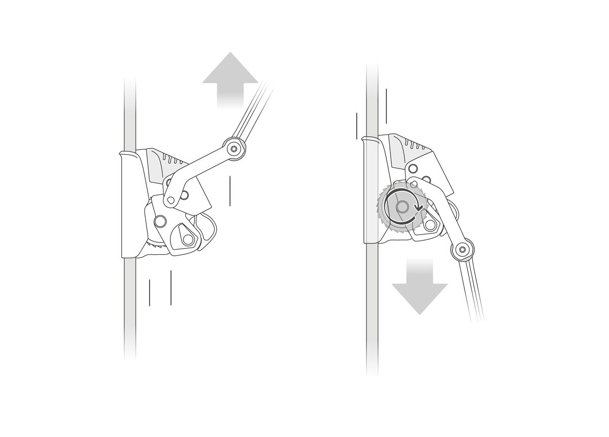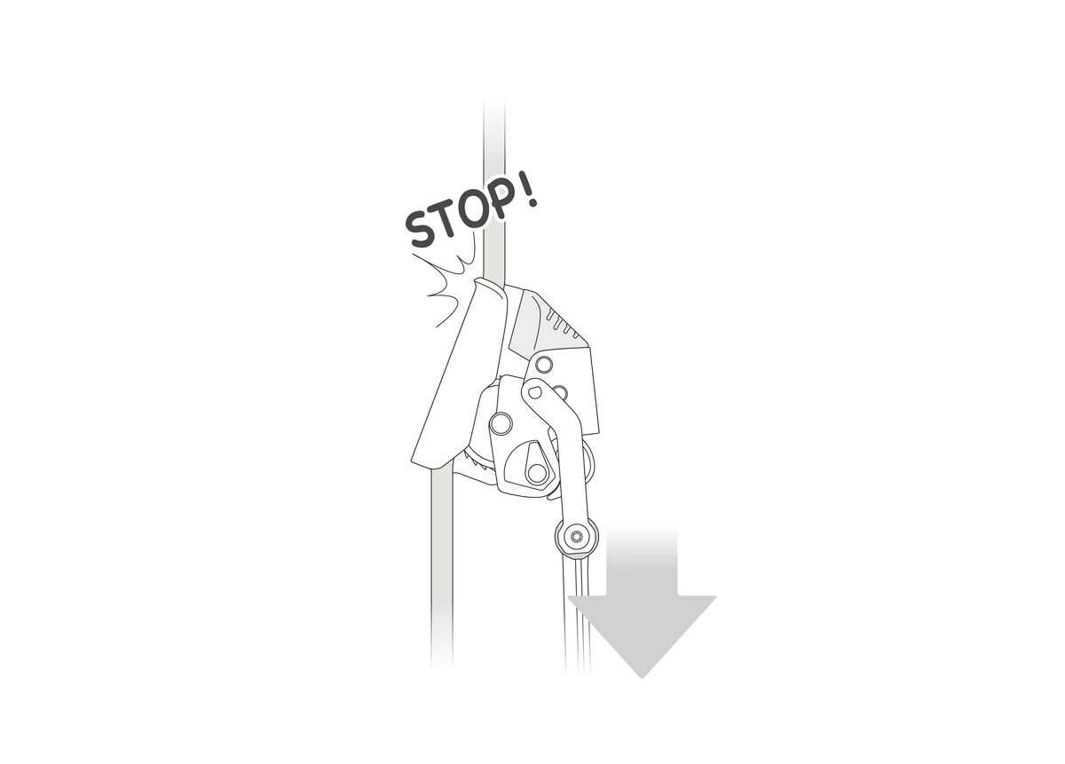 - Integrated LOCK function allows the user to immobilize the device to reduce the potential fall distance and keeps the rope from being blown upwards in very windy conditions - Use in combination with:
